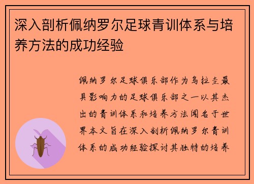 深入剖析佩纳罗尔足球青训体系与培养方法的成功经验
